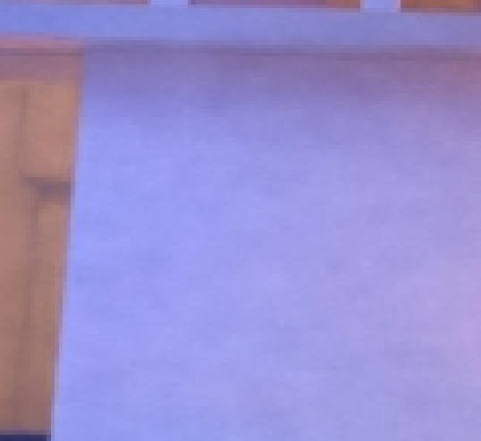 Per un esterno di solito c’è almeno una singola fonte di luce diretta, il sole, e il rendering risolve il problema. Se sono stati aggiunti effetti come Rumore e Nitidezza, uno o entrambi possono influenzare i pixel finali e dare luogo a una colorazione leggermente a chiazze o non uniforme. Ad esempio: